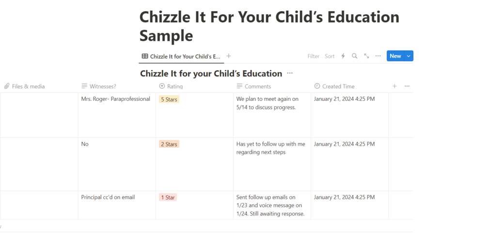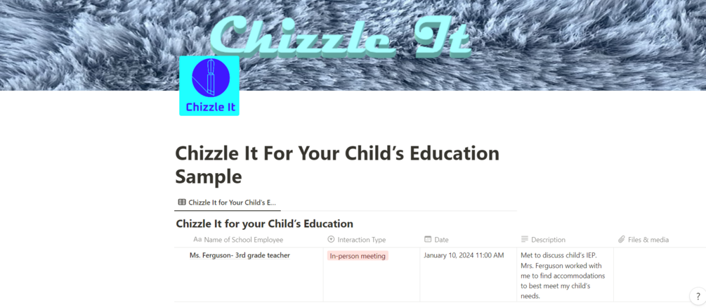 You serve as your child’s best advocate. Schools will tell you that they have your child’s best interest at heart, but their number one priority is protecting themselves, and you need to do the same thing. It is imperative that you document every interaction with your child’s school and teachers. Use Chizzle It For Your Child’s Education to log meetings, teacher interactions, calls, texts, emails, and observed behaviors.