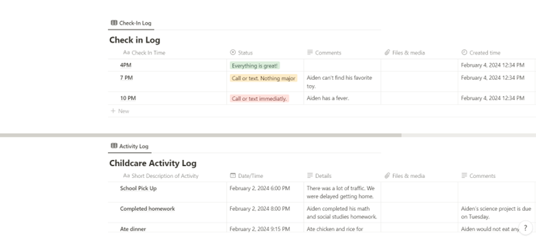 You'll get a shareable log that allows childcare providers to document childcare activities and check in with parents. A video on how to effectively use the template is also included in the purchase.